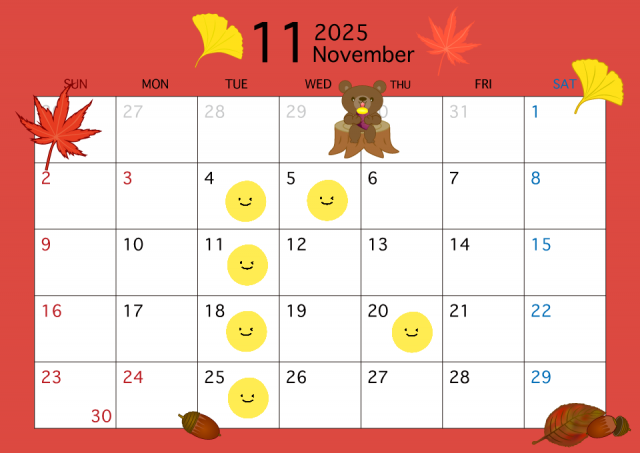 11月のお休み【変更とお詫び】
